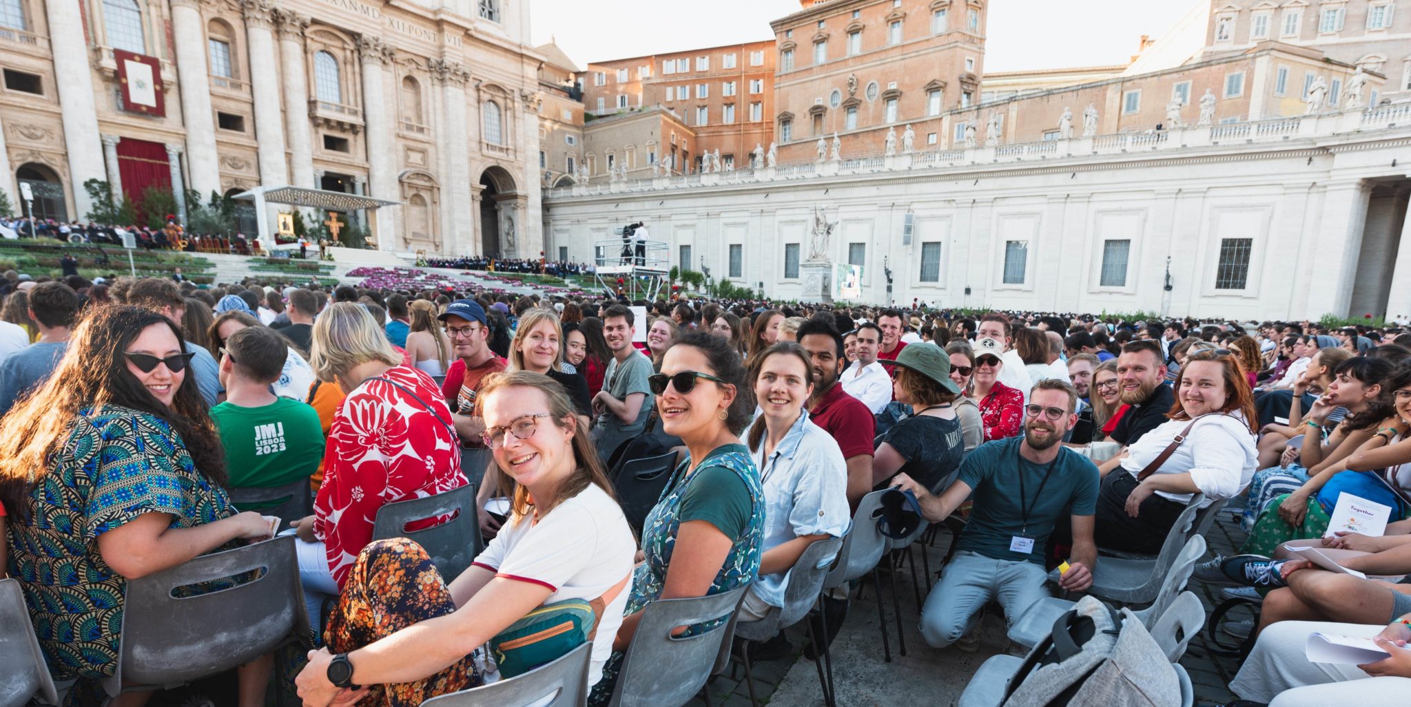 Foto: Lars König/Elyseüs Photography. De groep samen met duizenden andere jongeren op het Sint-Pietersplein voor het gebed met Paus Franciscus, kerkleiders en de leden van de synode om samen te bidden.